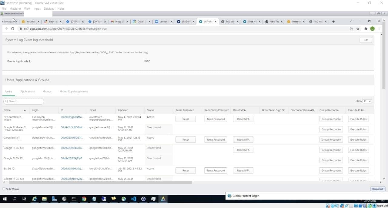Just some photos from our access to Okta.com Superuser/Admin and various other systems.