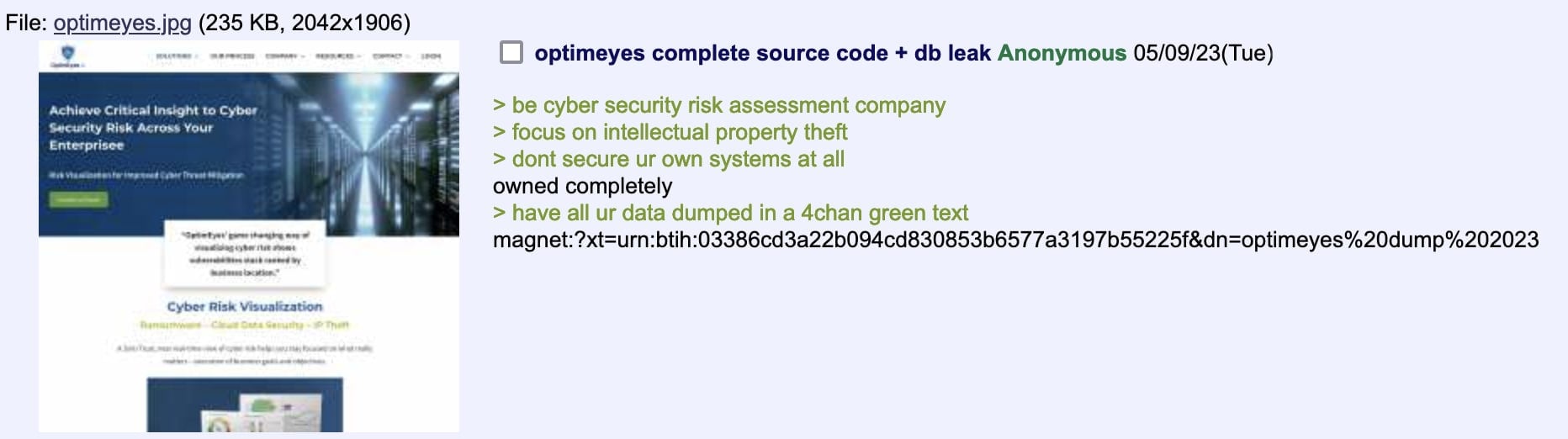 tags #leaks, #optimeyes, #security