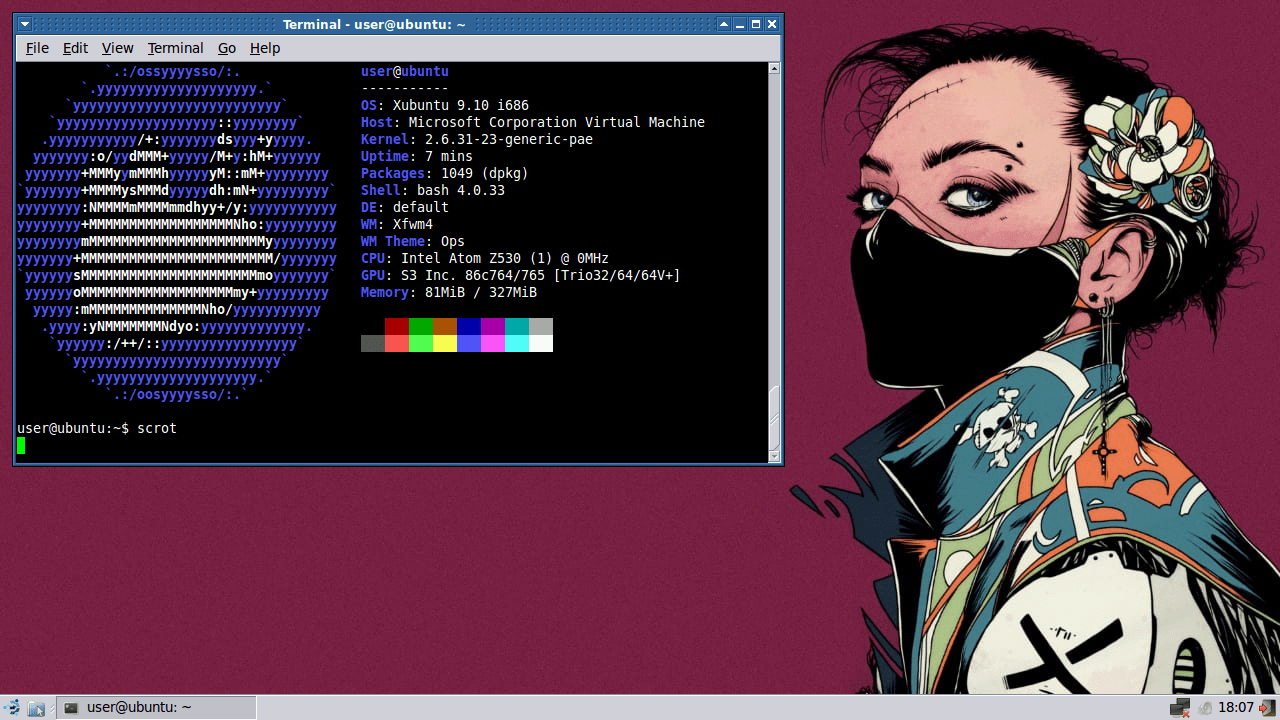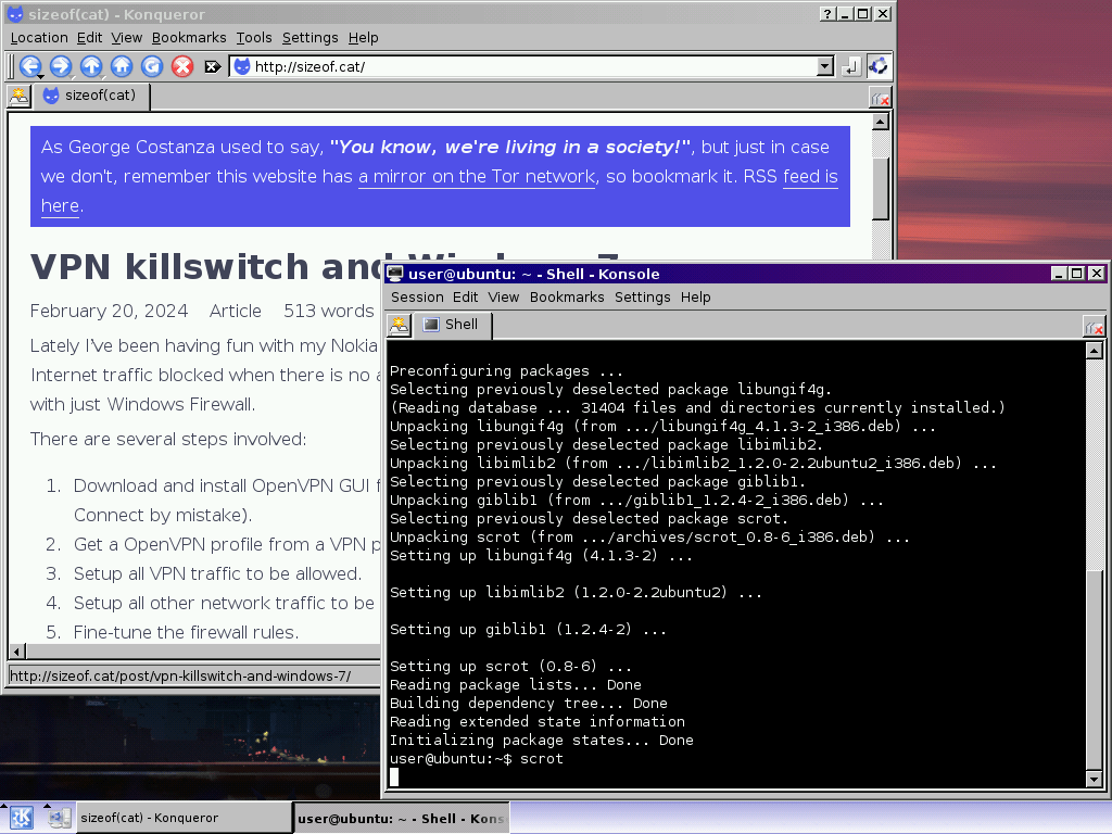 There is an issue with the default resolution on Ubuntu, which is 1024x768, and since the vertical resolution of the Booklet’s screen is 720 pixels, you get a scrollbar in Virtual PC. If we had xrandr version 1.2 on Ubuntu 5.10, it would have been really easy to reconfigure X server to use 1280x720.