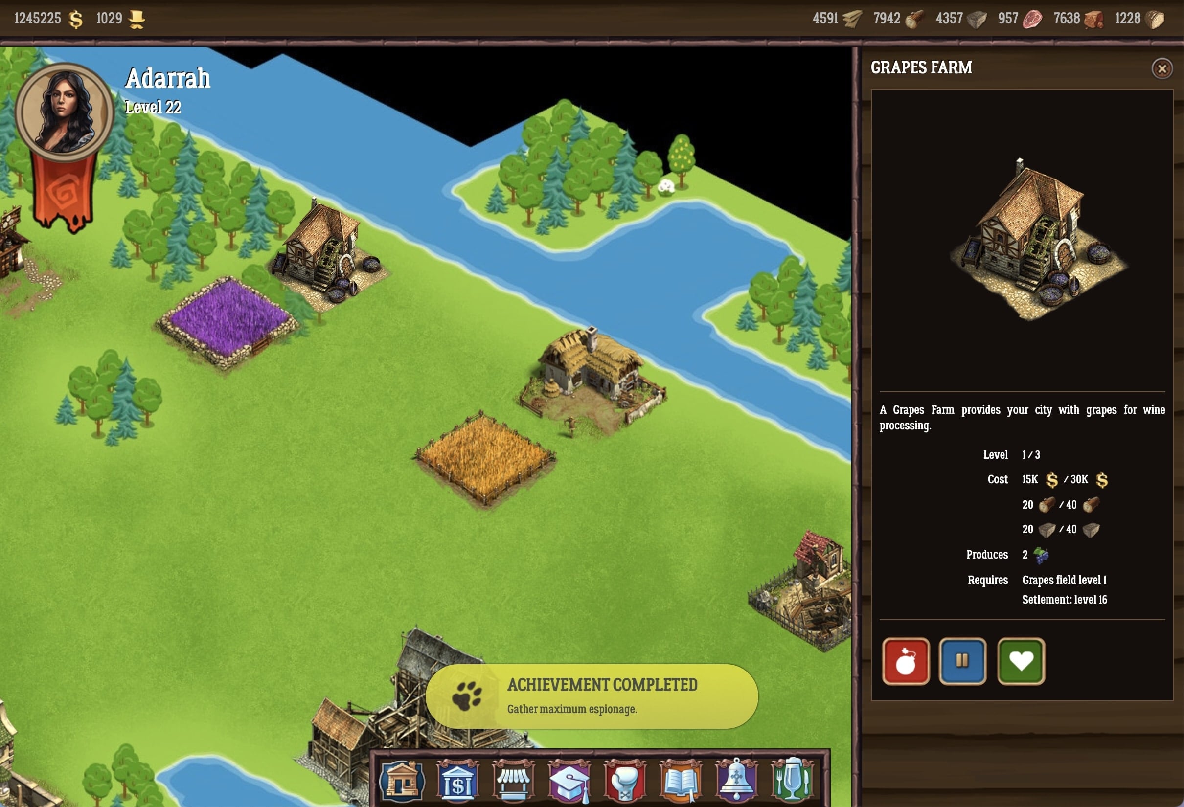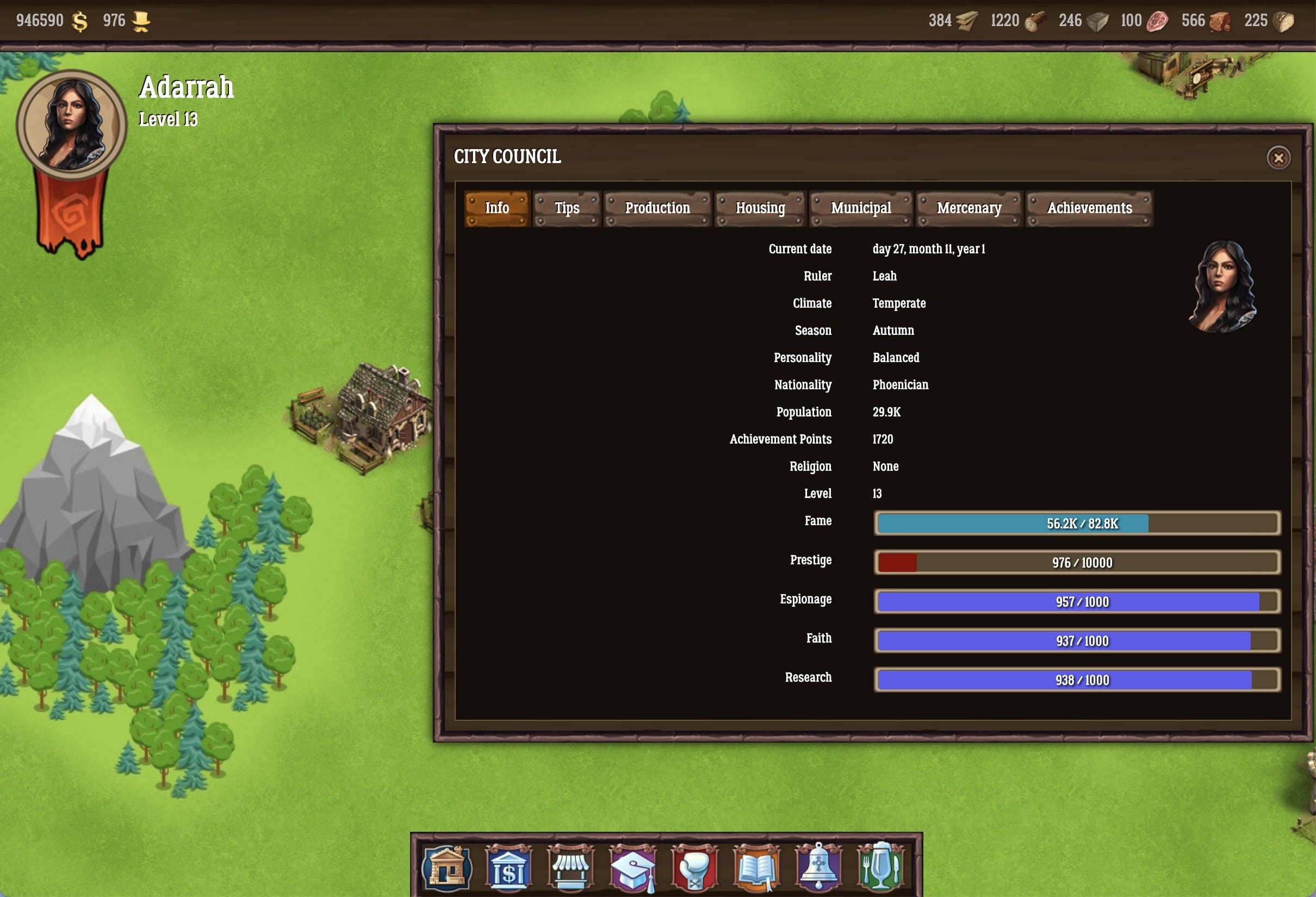 - ☑ Fame system that allows your city to level up via trades, conquests and special buildings.