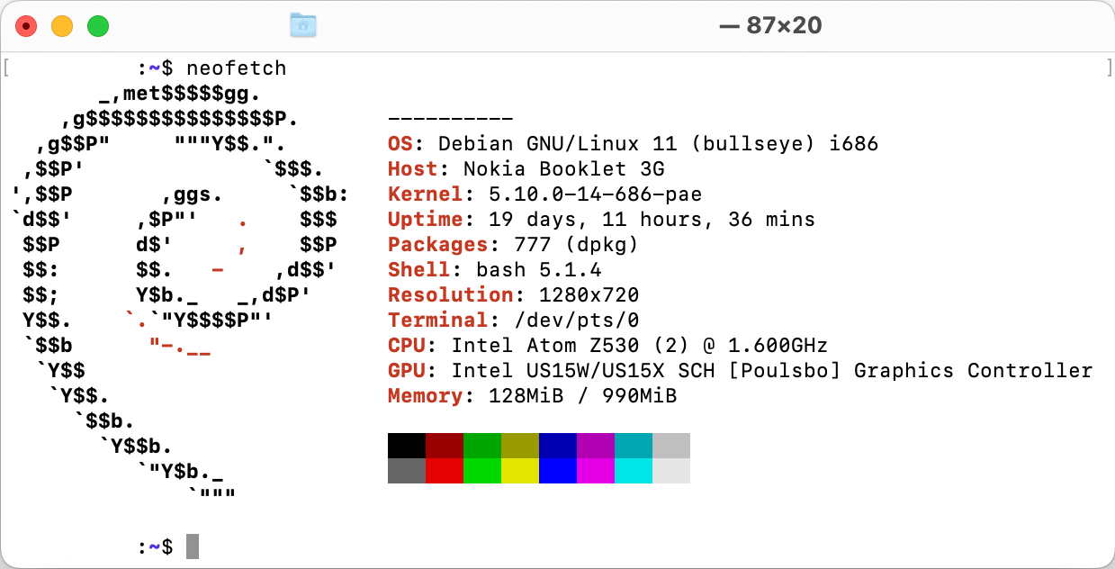 graphical.targetor 120MB of RAMmulti-user.target, no GUI), Windows with a bit of slimming down should be around 600MB) but the operating system is not the bottleneck. The current web browsers will just obliterate the Atom CPU, fill all the RAM and will start to aggressively swap on your already slow-as-a-dead-snail disk. If you don’t use a web browser the performance is great, though it won’t beat a 2021 M1 MacBook Pro, of course. 😛 - It’s perfect to use as a development or production server, it can run the latest Debian/Devuan with nginx, Gitea, SELinux, Postfix, Tor hidden services, IPFS, etc, with absolutely no problems. Database servers (MariaDB or PostgreSQL) will clog the memory but it will be ok; Redis or MongoDB will obliterate the Booklet probably.